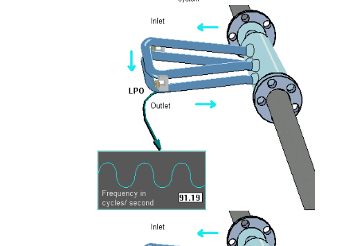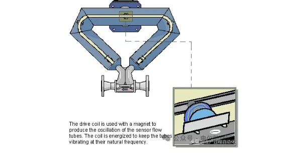 原理是依據牛頓第二定律,當流體在振動管中流動時,將產生與質量流量成正比的科里奧利力。當沒有流體流過時,振動管不產生扭曲,振動管兩側電磁信號檢測器檢測到的信號是同相位;當有流體經過時,振動管在力矩作用下產生扭曲,兩檢測器間將存在相位差。變送器測量左右檢測信號之間的滯后時間,這個時間差乘上流量標定系數就可確定質量流量數值。而在測量過程中,驅動線圈會激勵管道以其固有共振頻率相向振動。在管道振動時,每個傳感器上產生的電壓會形成一個正弦波。這可表示一個管相對于另一個管的運動,當兩個正弦波之間的時間滯后,即該數值與質量流量成正比,進而計算出流量數值。